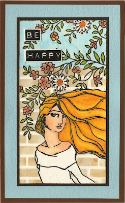 12 very kind comments from lovely people at Tuesday, April 02, 2019My inspiration piece began as a mop up piece of card, on which I used the remaining ink from the stencils I'd been using. It was quite pretty as it was, with some great colours, but I decided to add a bit more ink through two different stencils, ending with some Moonlight White Brilliance ink through the last one I used. The quirky Paperartsy characters were stamped onto the card, for placement, then stamped onto white card, coloured (Prisma Pencils) and cut out to 'paper piece' over the original images, edged with black ink to make them pop a little more.